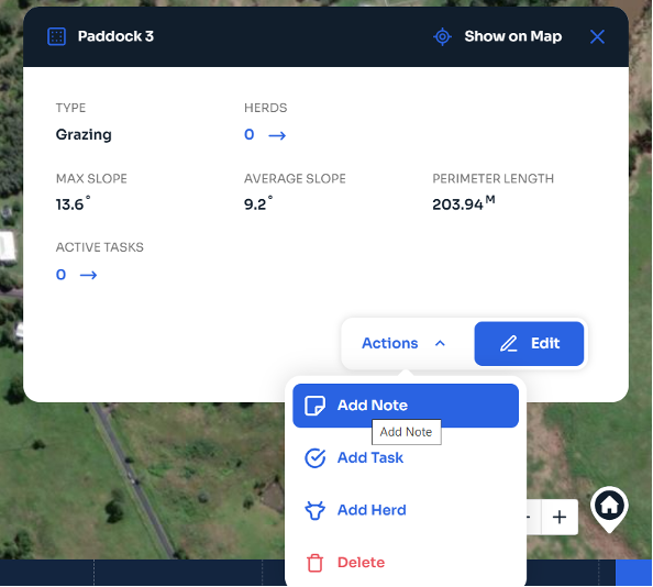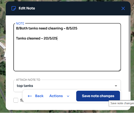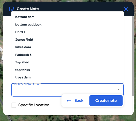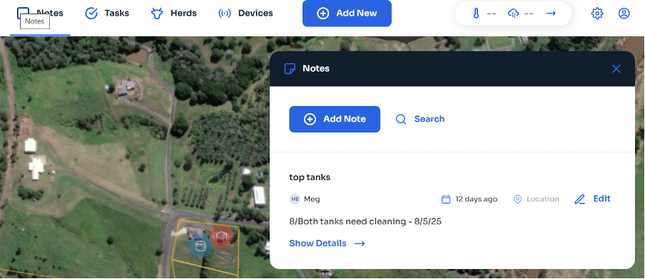 - Select “Add Note”. Fill in the details and attach the note to a Location/Device/Item.